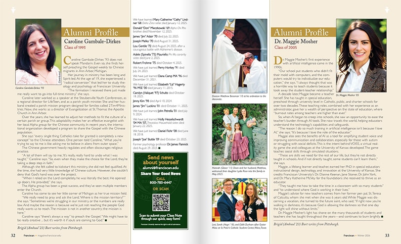 “At Franciscan, you receive the gift of an encounter with the person of Jesus Christ. And that’s the greatest thing that we can do for our students,” Foster said.