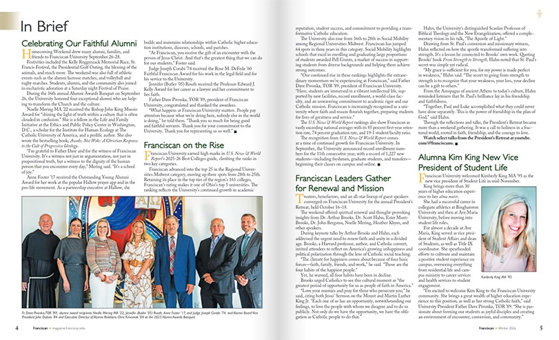 “Our continued rise in these rankings highlights the extraordinary momentum we’re experiencing at Franciscan,” said Father Dave Pivonka, TOR ’89, president of Franciscan University.